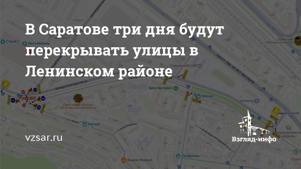 С 1 по 3 мая в Ленинском районе Саратова будет перекрываться движение транспорта, сообщает мэрия.