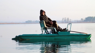 Видеосюжет. Женщина с веслом как символ спасения во время паводка