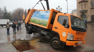 На проспекте Кирова мусоровоз провалился под землю