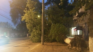 Порывы ветра с корнем вырвали дерево на Университетской