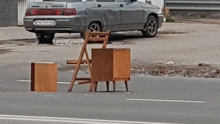 О дорожной яме напротив Горпарка предупреждает "выставка мебели"