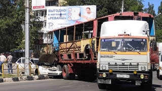 "Приора" въехала в перевозивший троллейбус "Камаз"