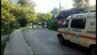 Спасатели оперативно убрали поваленное шквалистым ветром дерево
