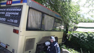 Около часа назад в Саратове городской автобус 11-го маршрута вылетел с проезжей части
