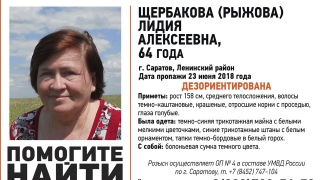 В Ленинском районе Саратова разыскивают 64-летнюю Лидию Щербакову