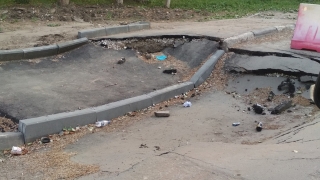 В Ленинском районе Саратова обвалился тротуар. Фото опубликовано в группе