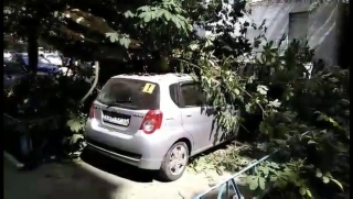 Сегодня во Фрунзенском районе Саратова дерево рухнуло на машину
