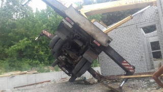 На 5-й Дачной упал автокран. Крановщик госпитализирован
