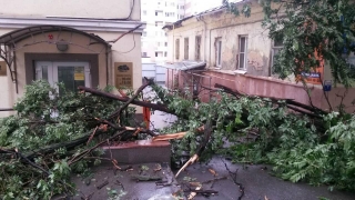 Шквалистый ветер с дождем и грозой обрушил на улицы Саратова крупные части деревьев