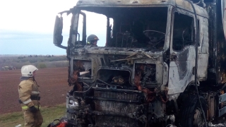 Вчера в Воскресенском районе Саратовской области загорелся грузовой автомобиль