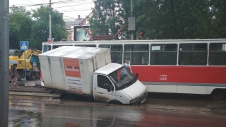 Саратовец "не заметил" ремонта трамвайных путей и утопил "Газель"