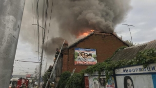 В эти минуты горит двухэтажный дом на улице Большая Горная