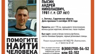 Сегодня был обнаружен пропавший еще 5 сентября житель Энгельса Андрей Пысин