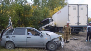 Под Хвалынском столкнулись грузовик и "Калина". Погибли два человека