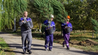 У въезда на мост "Саратов-Энгельс" высадили молодые сосны