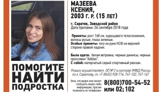 В Саратове пропавшую без вести 15-летнюю Ксению Мазееву нашли живой