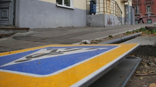 В центре Саратова почти месяц лежит забытый дорожный знак