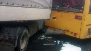 Столкновение фуры и 11-го автобуса затормозило движение на Стрелке