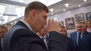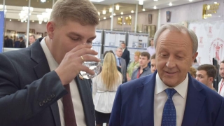 На выставке в облдуме Иван Кузьмин напоил Дмитрия Пьяных очищенной водой