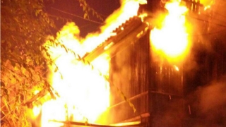 В эти минуты в Марксе Саратовской области пожарные тушат старый дом