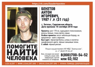 Пропавший в Энгельсе Саратовской области 31-летний Антон Бекетов найден