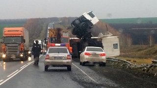 Под Аткарском фура протаранила отбойник и встала на дыбы