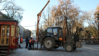 На Волжской около "Семена" ставят трамвайный столб начала ХХ века