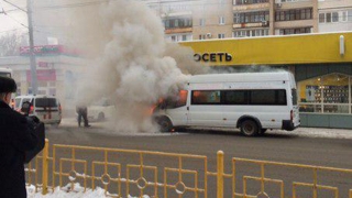 Сегодня утром на проспекте Строителей Энгельса загорелось маршрутное такси