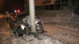В Ленинском районе ночью водитель иномарки врезался в столб