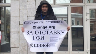 Сегодня у главного входа в правительство области состоялся одиночный пикет жителя