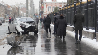 Около получаса назад "Мерседес" едва не протаранил забор правительства Саратовской области