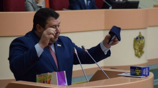 Депутат вынес на трибуну книгу Жириновского, носки и чай