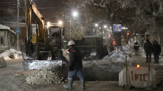 Ночью в центре Саратова сотрудники ПАО "Т Плюс" усиленными темпами продолжали