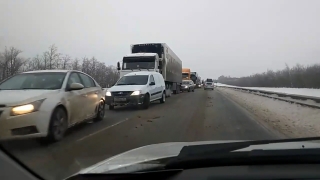 В Вольском районе Саратовской области парализовано движение на участке трассы