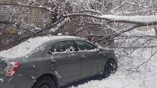 В Саратове мокрый снег начал ломать ветви и целые деревья