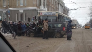 Только что в центре Саратова дорогу не поделили легковой автомобиль и автобус