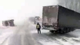 Снегопад. На трассе под Хвалынском вылетели в кювет сразу четыре фуры