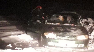 Спасатели вытащили из снега застрявший автомобиль с людьми