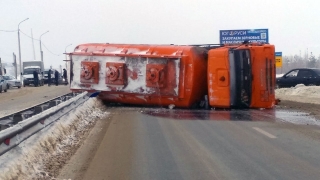 Под Саратовом перевернулся бензовоз. Вольский тракт перекрыт