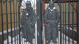 Новое здание в Саратове украсили ворота с изображением основателей города