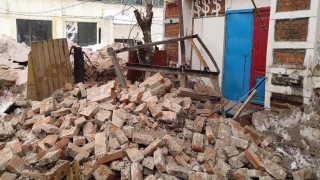 Сегодня в Саратове произошло обрушение части кровли и обложенного кирпичом