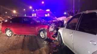 "Лада" и "BMW" ночью не поделили перекресток. Есть пострадавшие