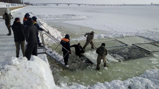 В эти минуты в Саратове у спуска к Волге сотрудники областной службы спасения