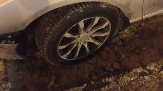 Иномарка провалилась в "вечную" яму в центре Саратова