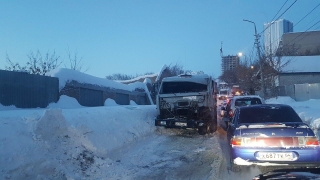 Движение в поселке Затон в Волжском районе Саратова парализовано из-за "Камаза"