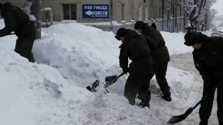 Рота курсантов помогает саратовским коммунальщикам в борьбе со снегом