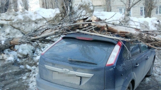 В Кировском районе Саратова от порывов ветра на иномарку рухнуло дерево