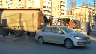 Сегодня утром в Октябрьском районе Саратова с "Камаза" упала цистерна с мукой