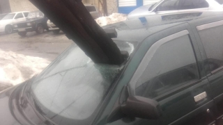 В центре Саратова кусок фасада пробил лобовое стекло иномарки