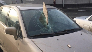 В центре Саратова упавшая лестница пробила лобовое стекло автомобиля